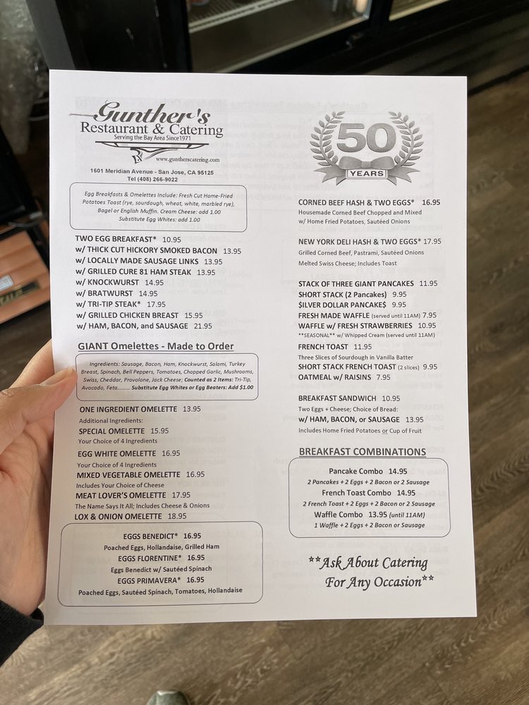 Gunther’s Restaurant and Catering, located in San Jose, offers a diverse menu with options for all preferences, including vegan choices. The restaurant provides a warm and cozy atmosphere, perfect for a casual dining experience. Their famous Reuben sandwich on marbled rye is a must-try, along with their delectable chocolate chip cookies that customers rave about. The staff at Gunther’s is friendly and attentive, ensuring a pleasant dining experience. Whether you’re looking for comfort food or a hearty meal, Gunther’s is a great choice. Don't miss out on their Friday Goulash or their flavorful stews and soups. Gunther’s prides itself on serving delicious food with generous portions, making it a favorite among locals and visitors alike. Additionally, the cookies are highlighted as a must-have, described as addictively gooey and heavenly.